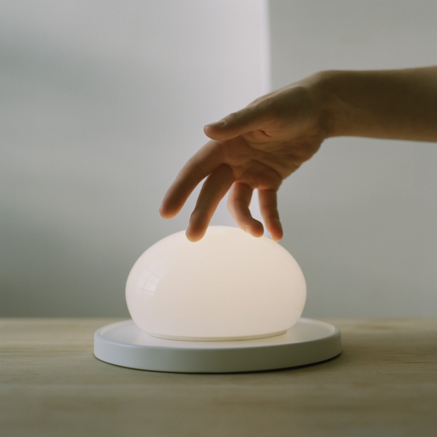 La Bolita está hecha de vidrio, un material artesanal que le aporta un aspecto suave y transmite belleza. Este diseño intuitivo que esconde la fuente de luz en la base; un detalle que pasa desapercibido y crea curiosidad, invitando a tocarla.