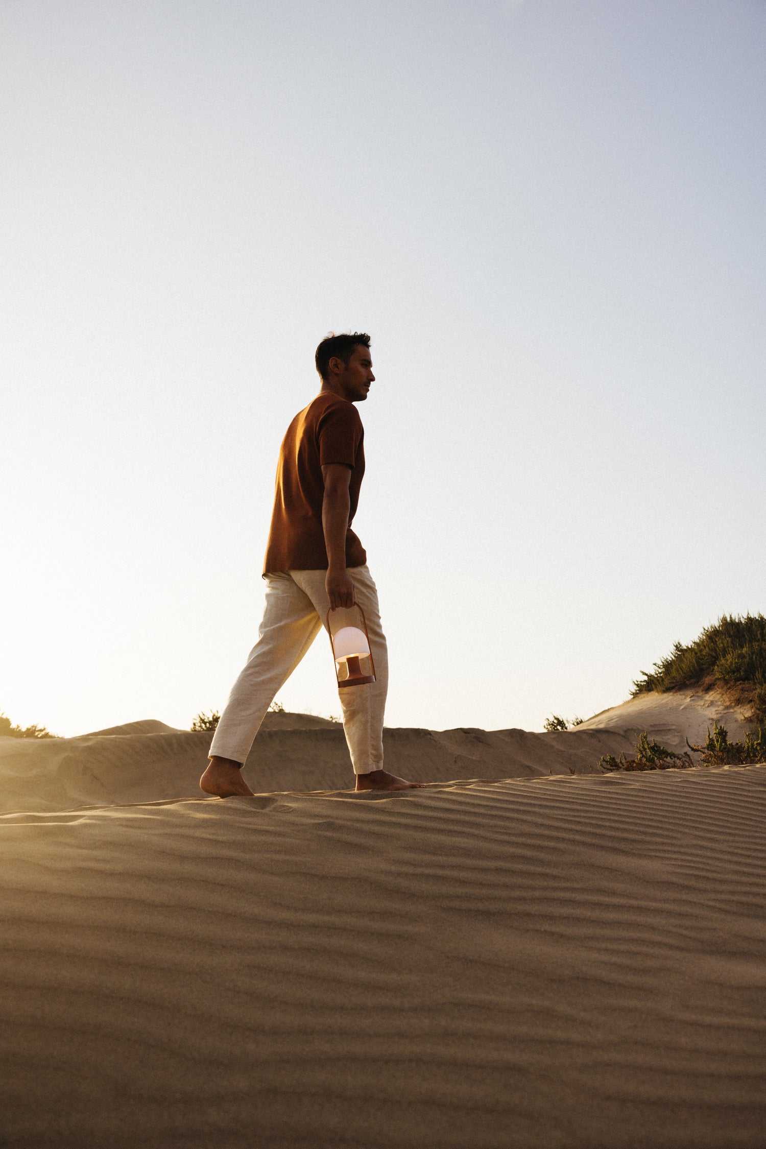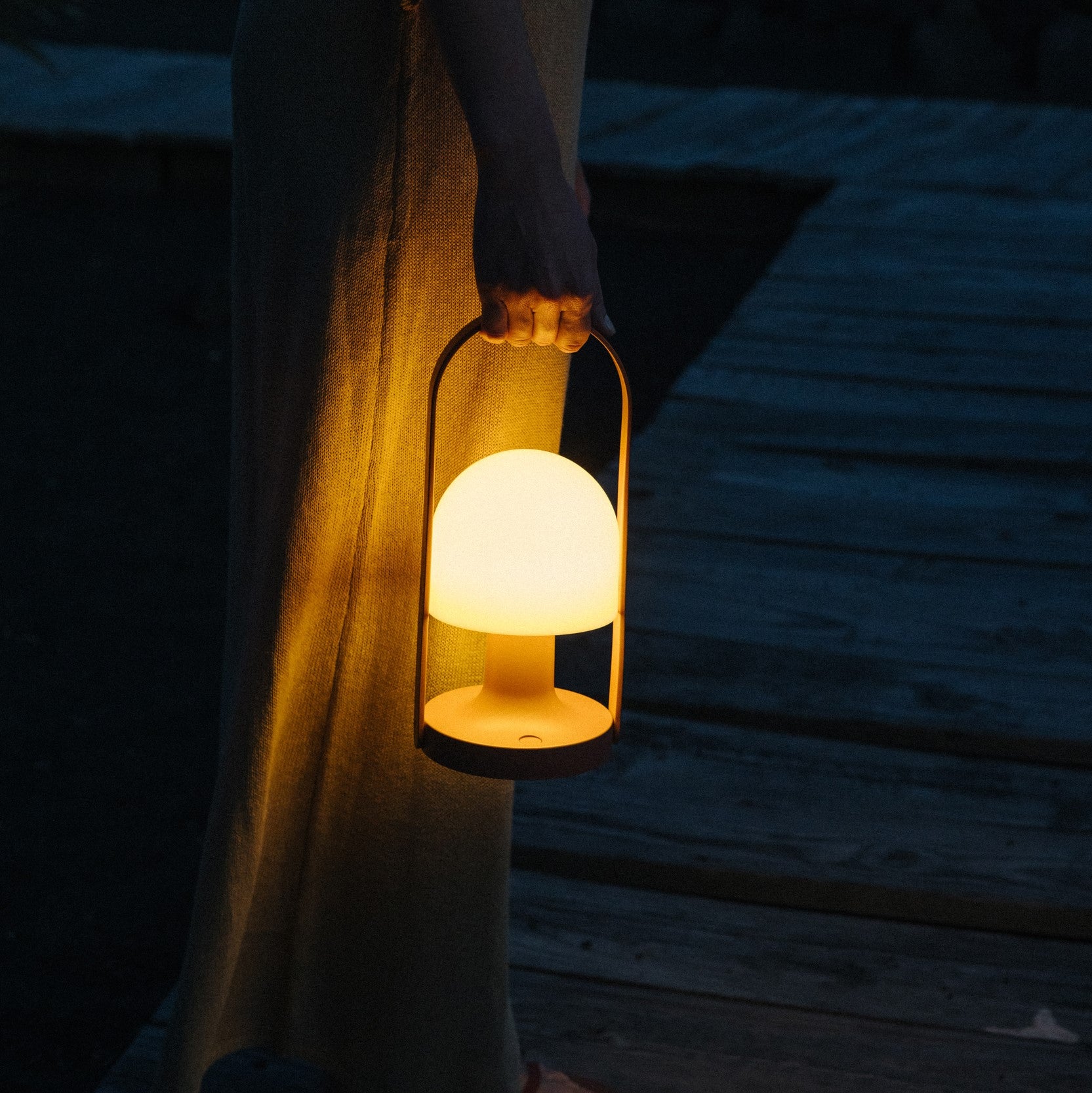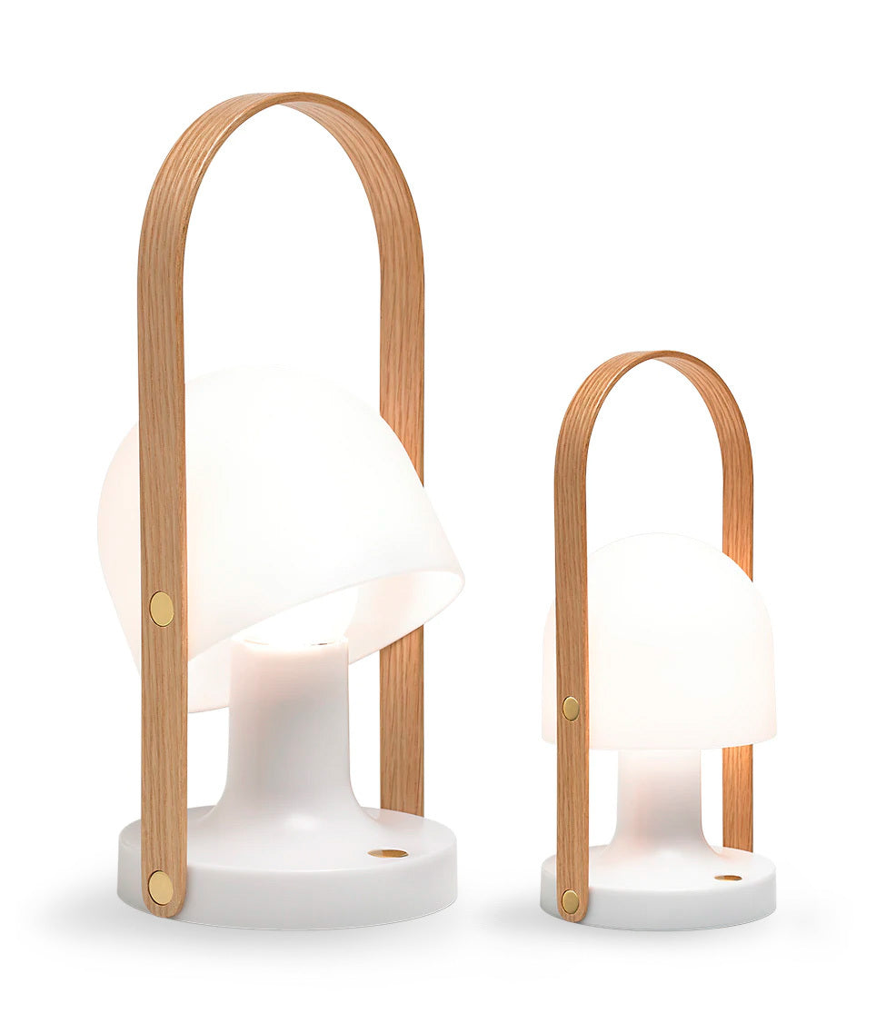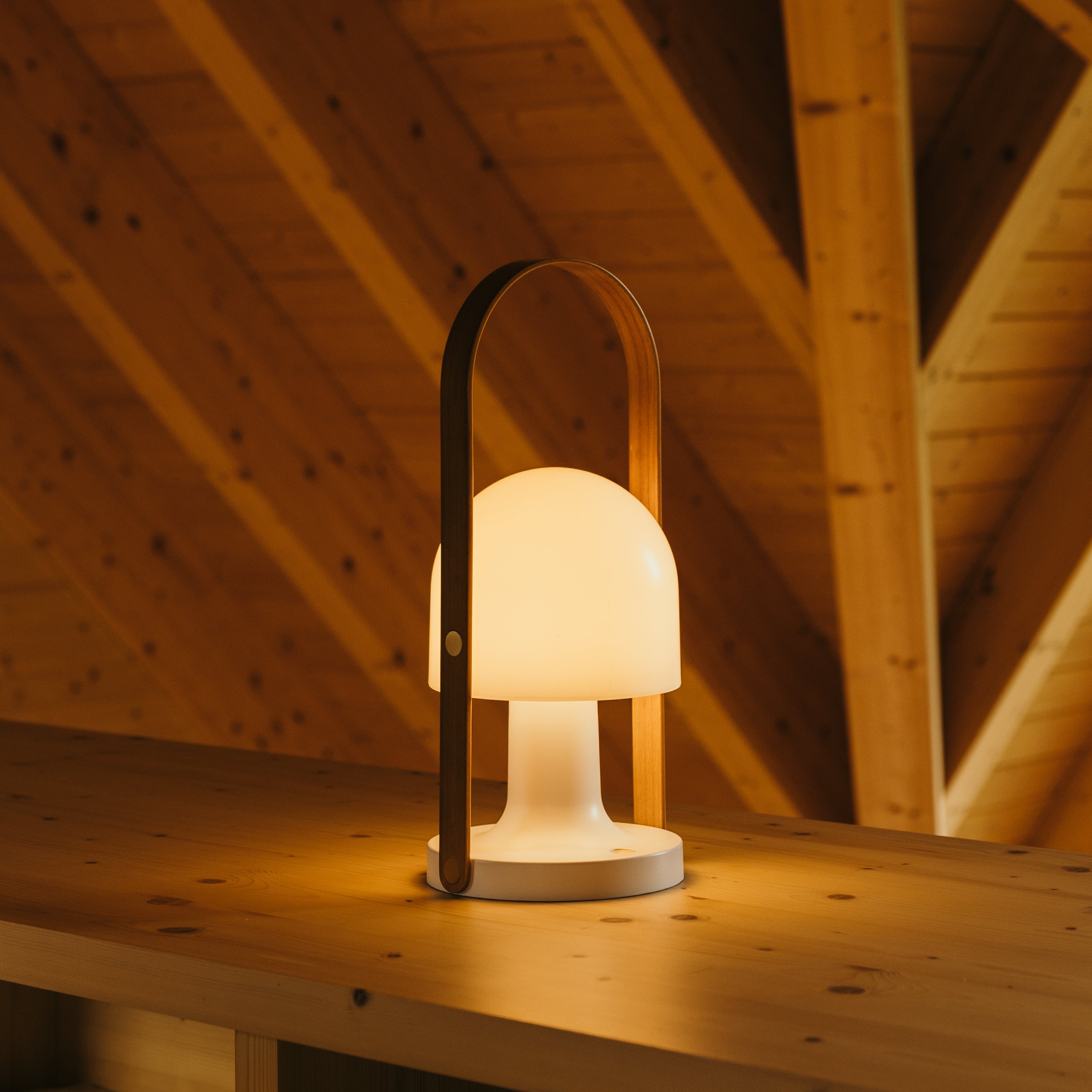 Su carismático diseño con el asa de madera y sus distintos tipos de iluminación la convierten en una lámpara multifuncional: puede ser un punto de luz en cualquier estancia, iluminar cenas en la terraza, alumbrar acampadas y travesías en barco, y también permite leer.