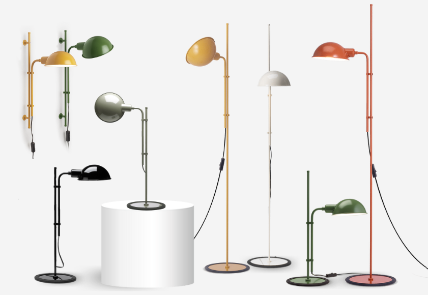 La Funiculí está disponible como lámpara de pie, mesa y aplique de pared.