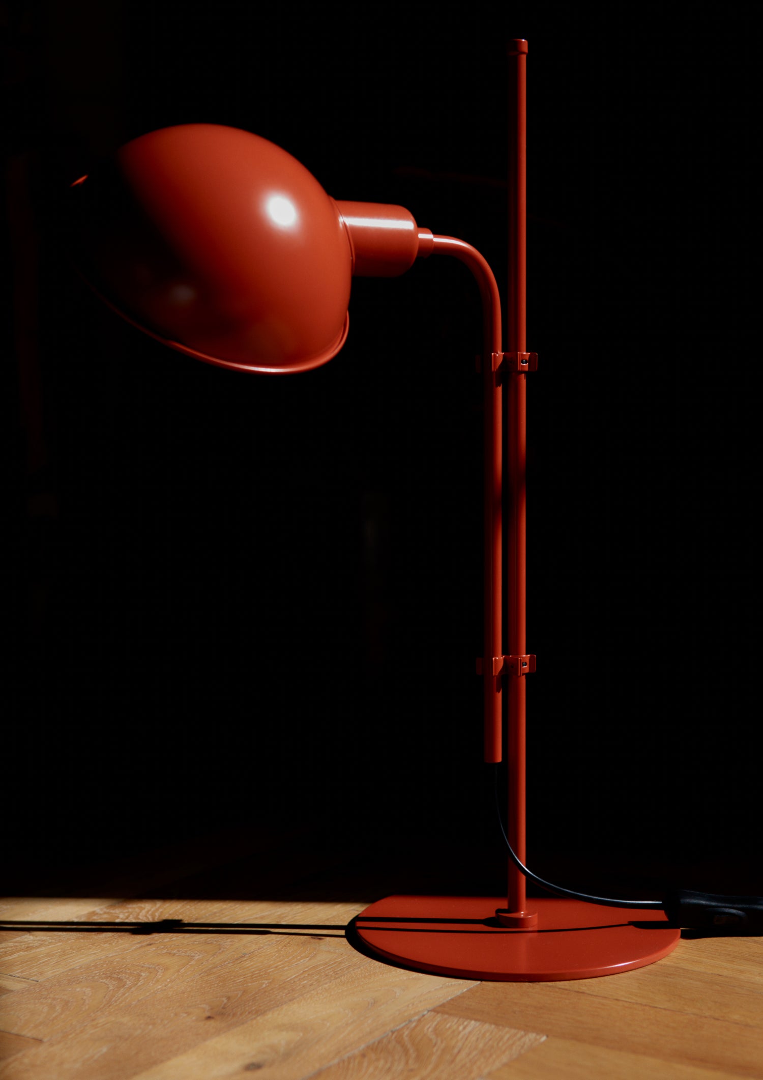 The three versions share the same structure, which has a double clamp system which allows to vertically move the lampshade for height adjustment.
