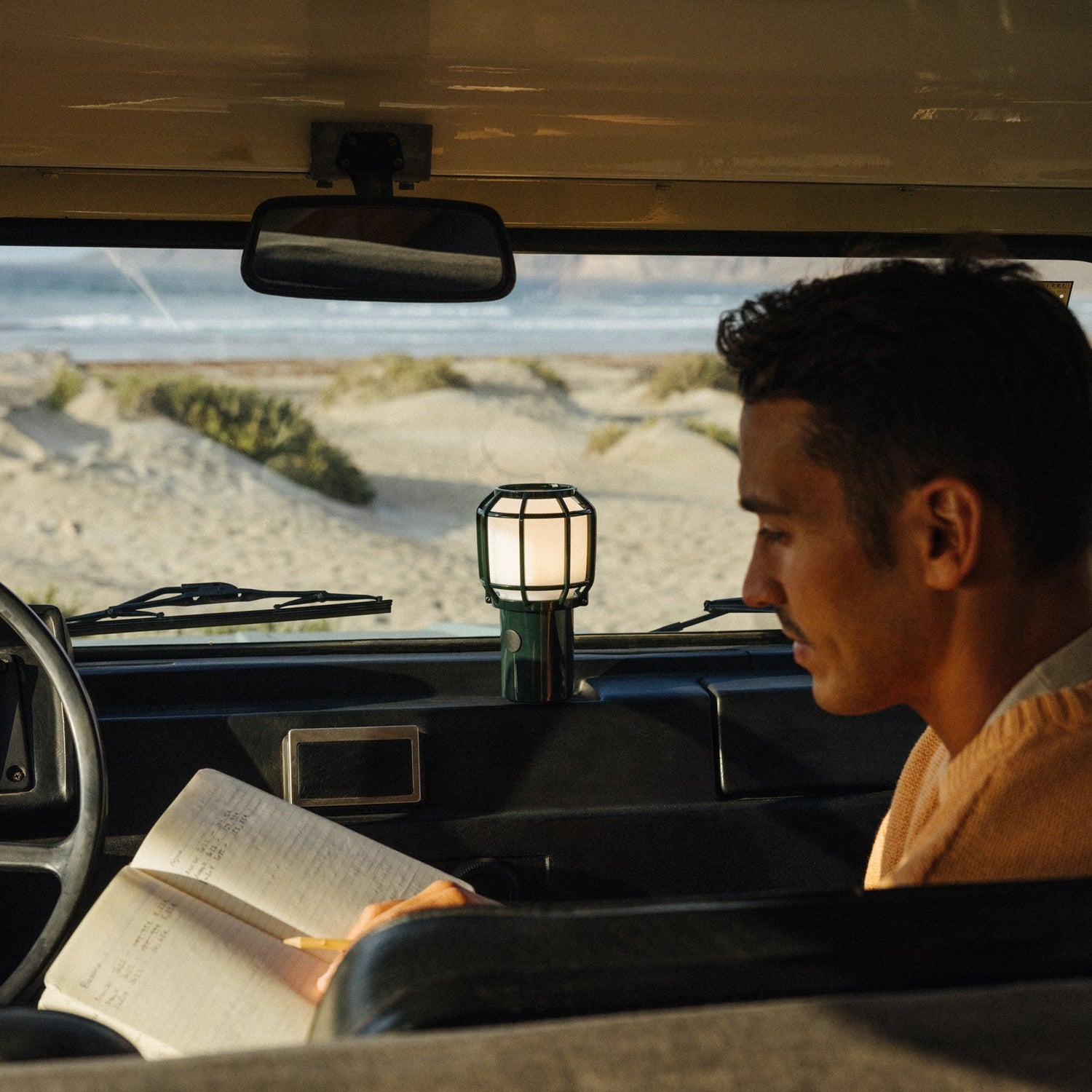 A portable, waterproof design that can illuminate any indoor or outdoor space. The Chispa is powered by a rechargeable battery and has three types of lighting, from softer to brighter.