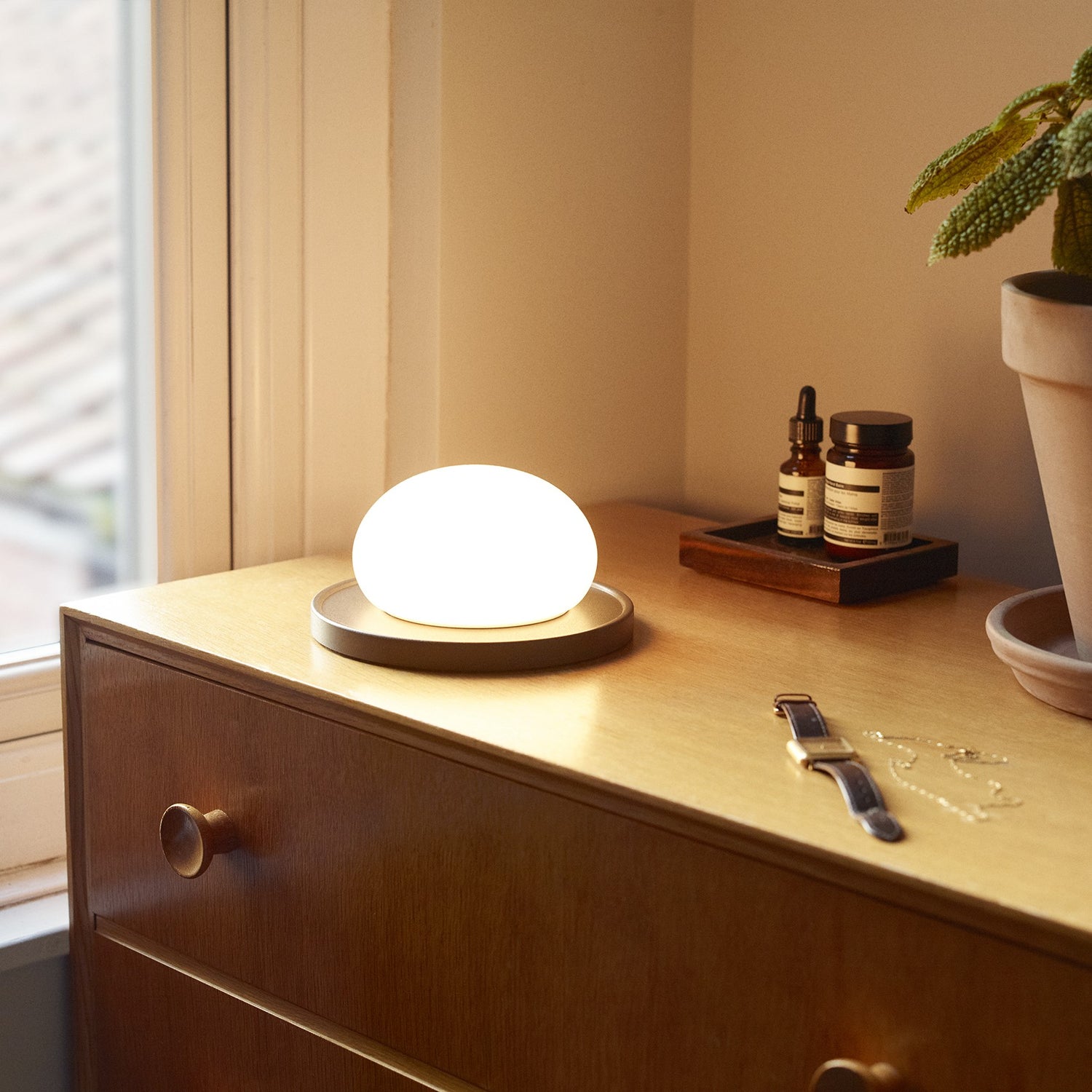 En una era tan digital como la actual en la que se compra a golpe de clic y se lee deslizando el dedo, a veces se echa de menos algo tan humano como es tocar. La lámpara Bolita invita a tocar la luz para modularla.